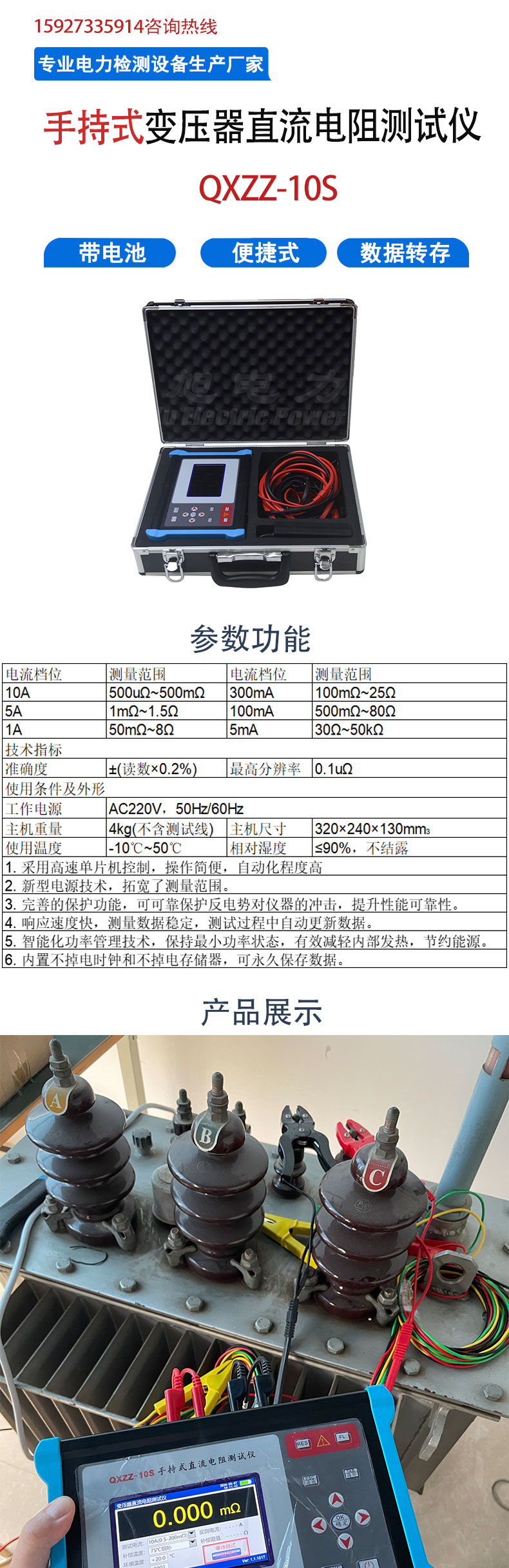 变压器直流电阻测试仪全自动手持式便捷款线圈电阻检测仪