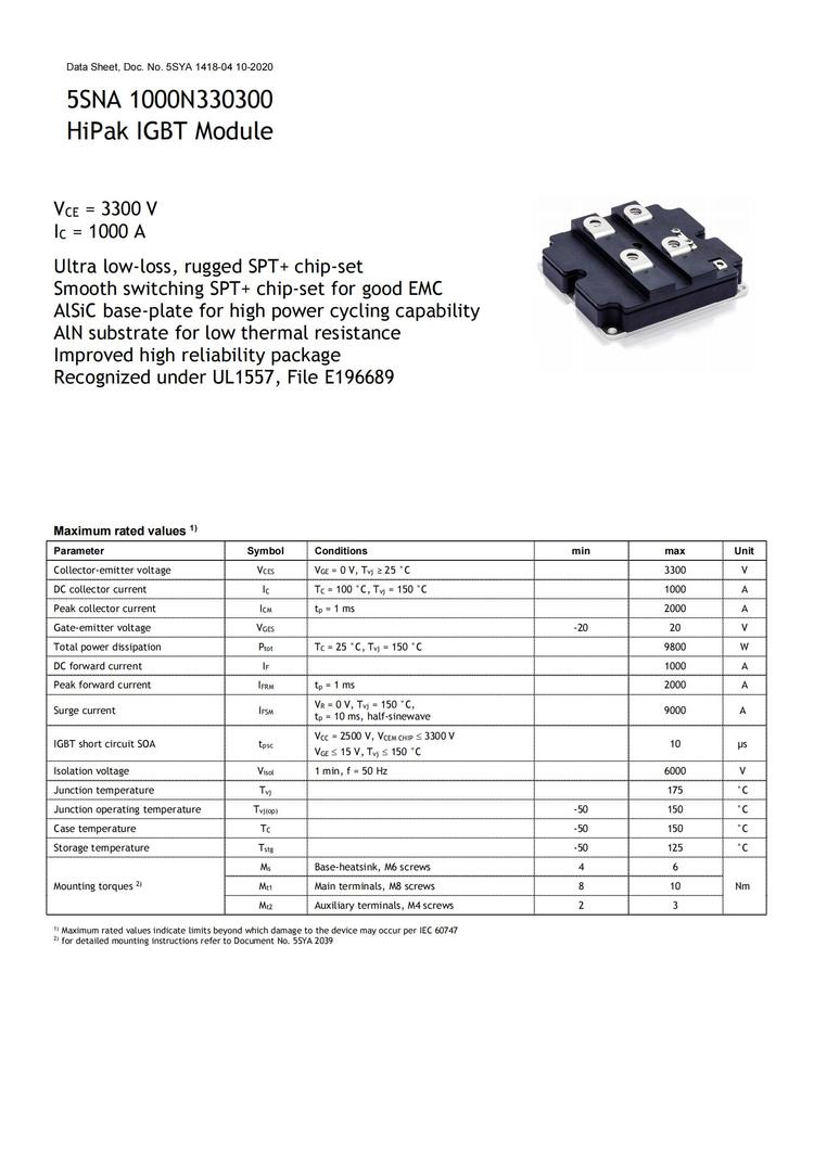 日立能源 IGBT模块 5SNA 1000N330300(1000A/3300V) 品牌 | 日立能源 | ||