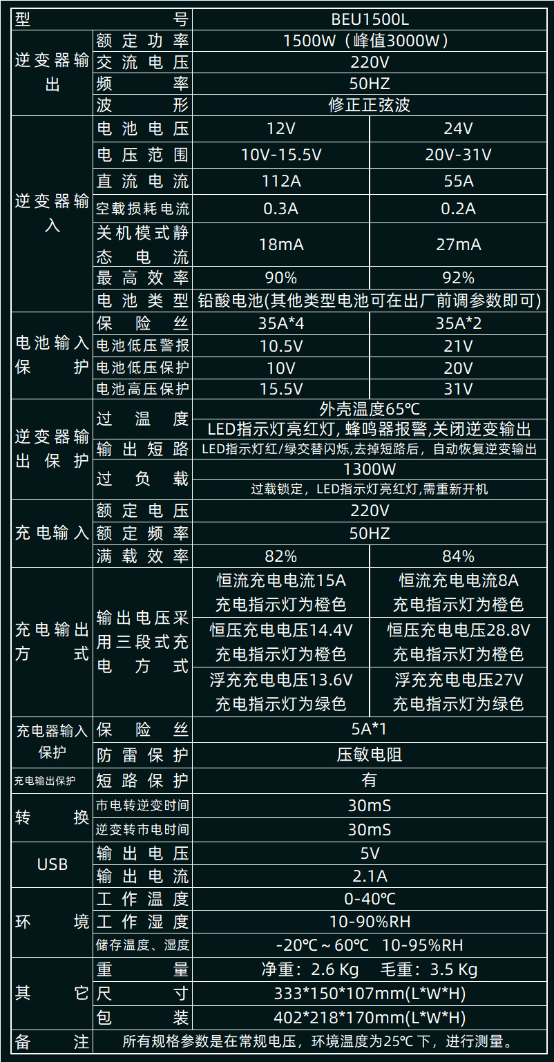 保护类型 | 短路保护、电池高低压保护、过载保护、过温保护 | ||