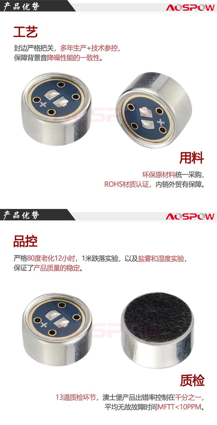 澳士堡22年mic厂家供应,领夹麦用、单指向双电容、抗干扰降噪、9750咪头,内含双电容有效屏蔽射频干扰信号,以及抗干扰磁珠,采用韩国RF管芯,质量稳定可靠,适用于会议麦,领夹麦等产品。