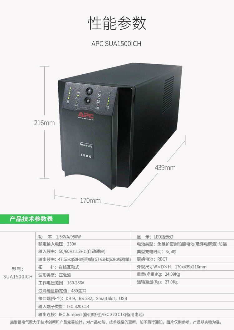APC UPS不间断电源SUA1500ICH 1500VA/980W 品牌 | APC | ||