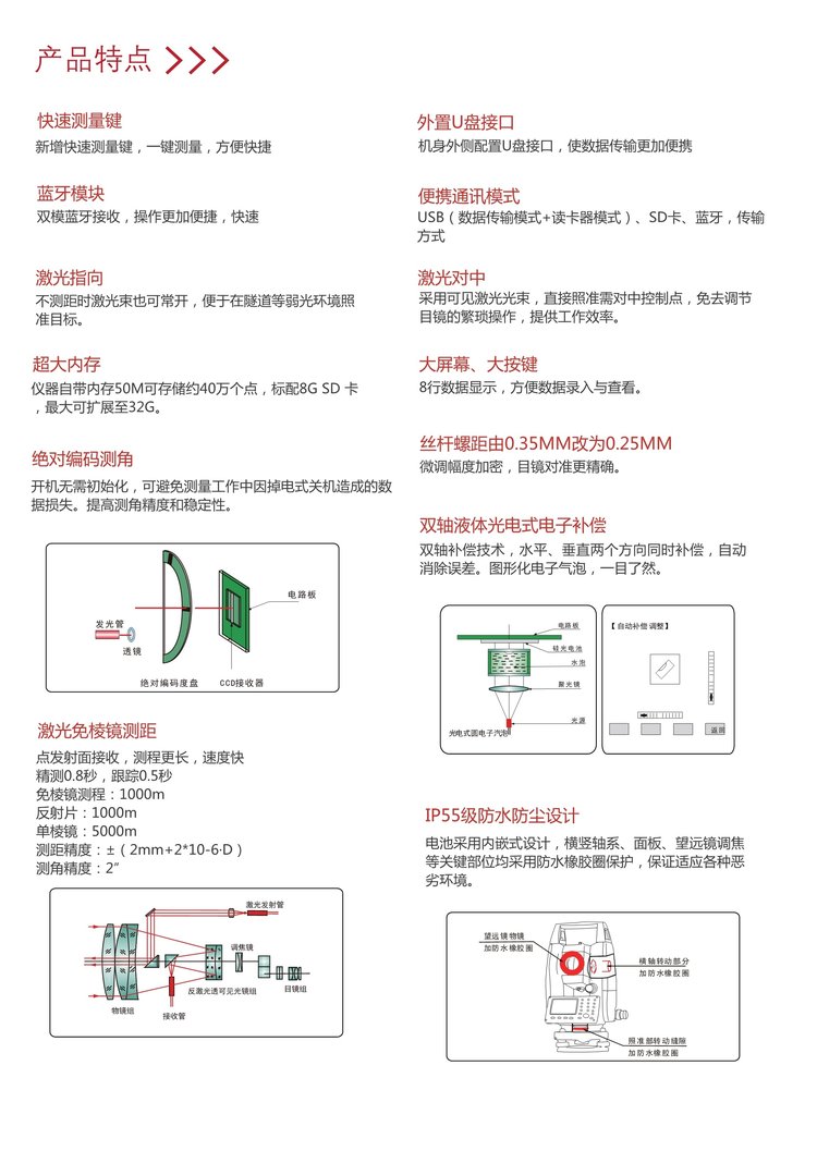 高速测距 | 精测0.3秒,跟踪0.1秒 | ||