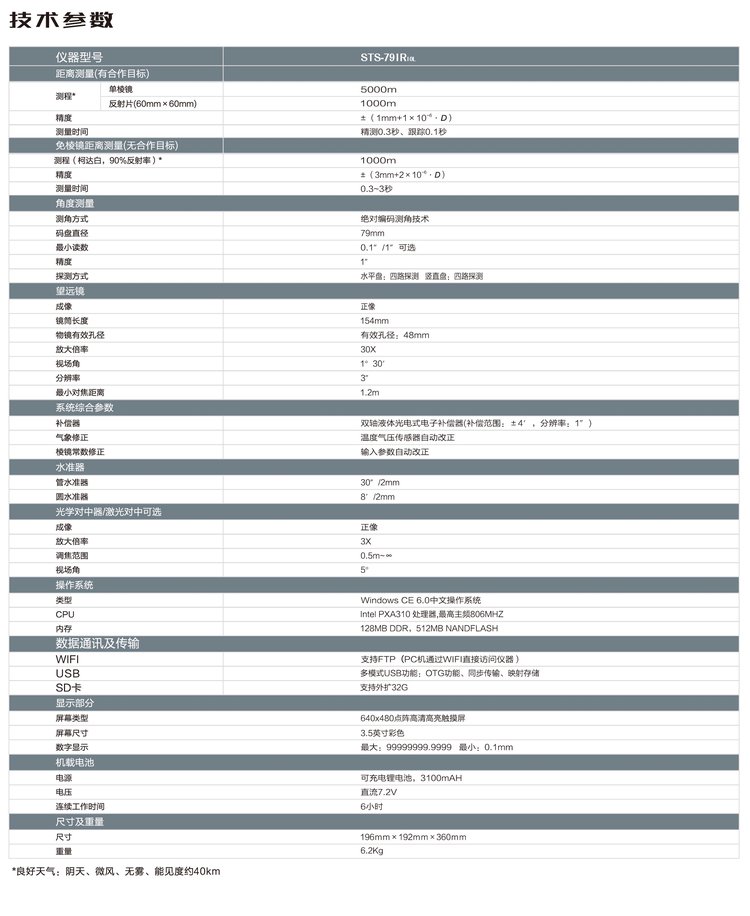 高速测距 | 精测0.3秒,跟踪0.1秒 | ||