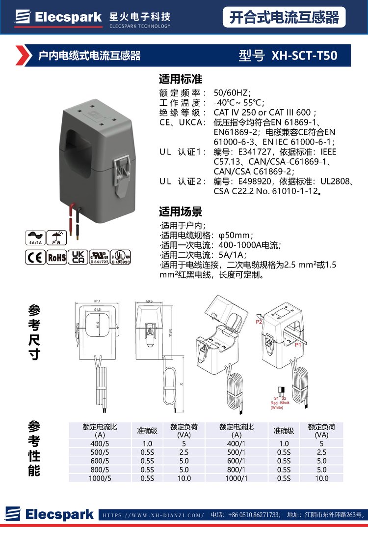 星火 柱形线缆开口互感器 智慧监测平台 项目改造 100-1000A输出5A/1A 颜色 | 黑色 | ||