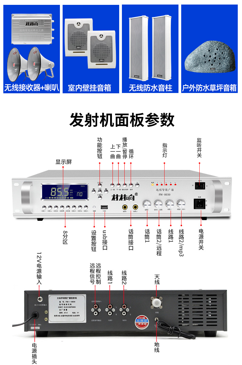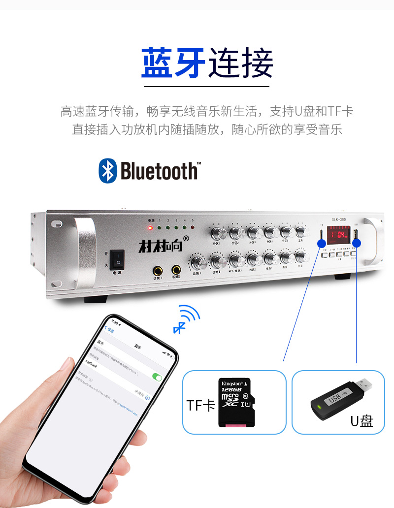 村村响定压蓝牙功放学校校园背景音乐大功率无线公共广播免布线