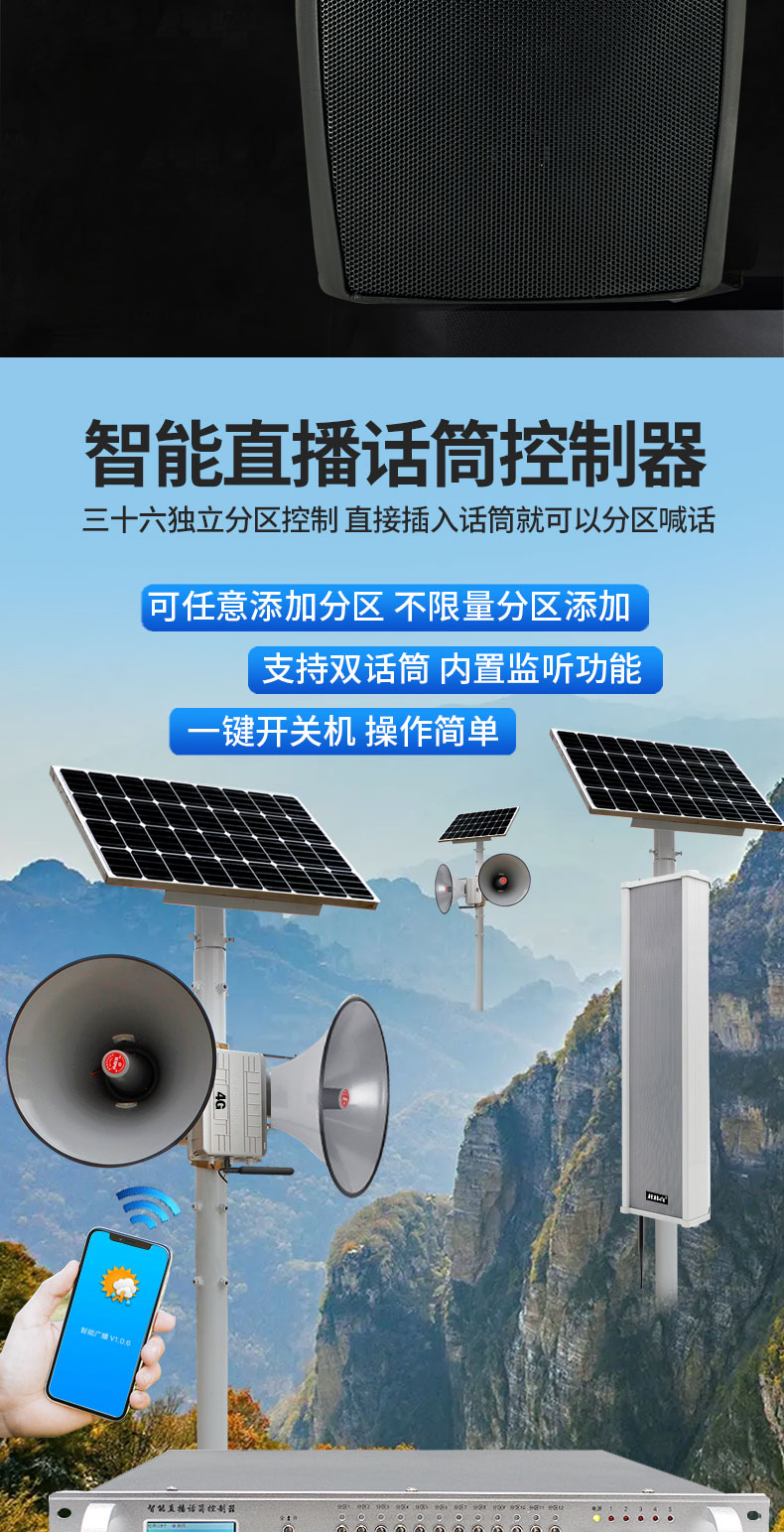 4G广播校园音柱村村通农村无线防水大喇叭室内外壁挂智能远程系统