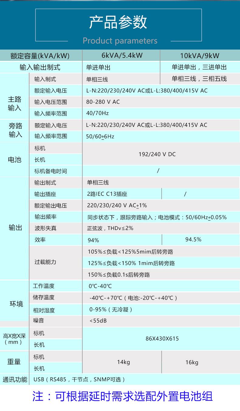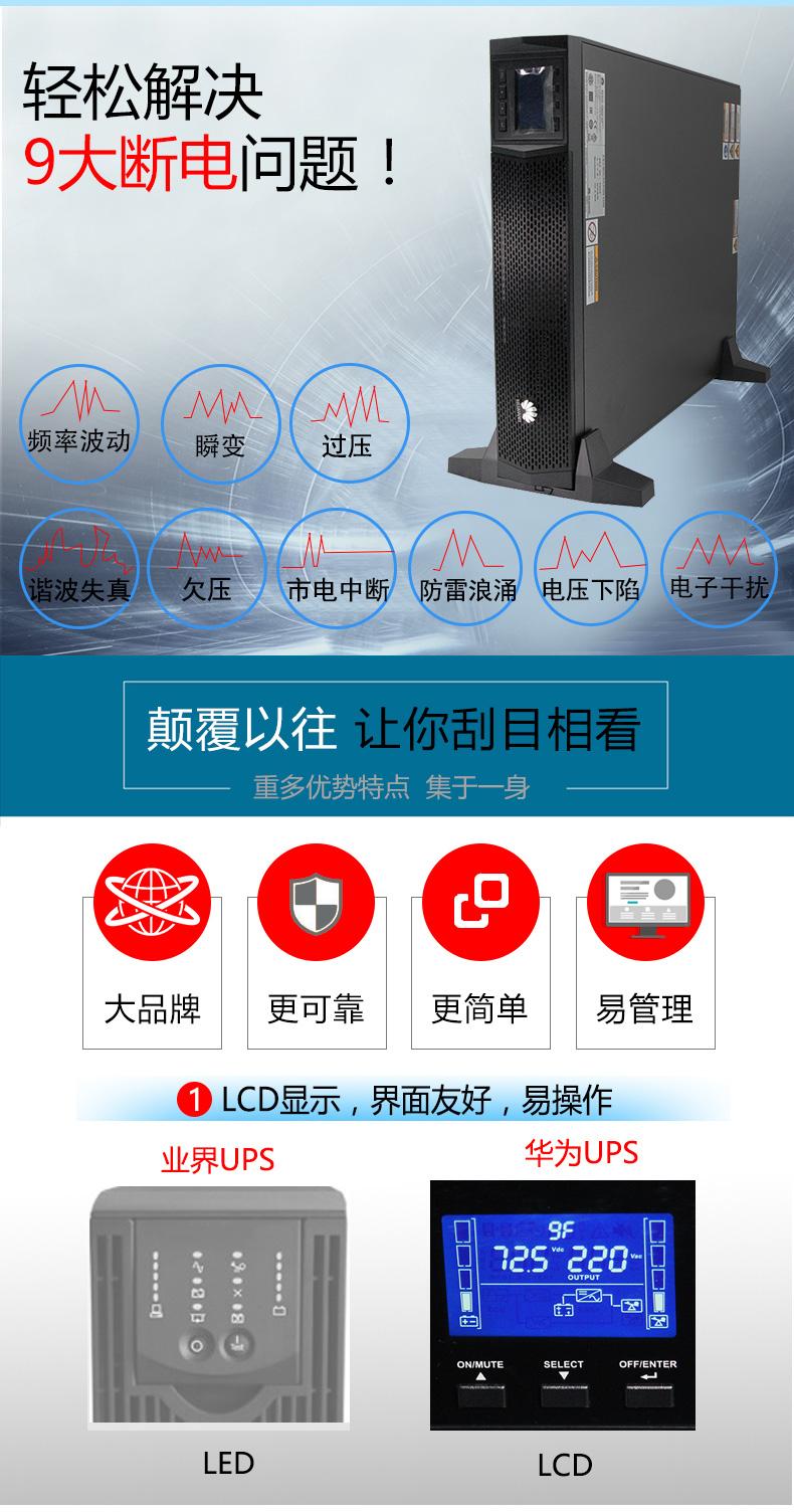 华为UPS电源2000-G-6KRTL 6KVA/5.4KW在线式 6KVA/5400W机架式 是否支持加工定制 | 否 | ||