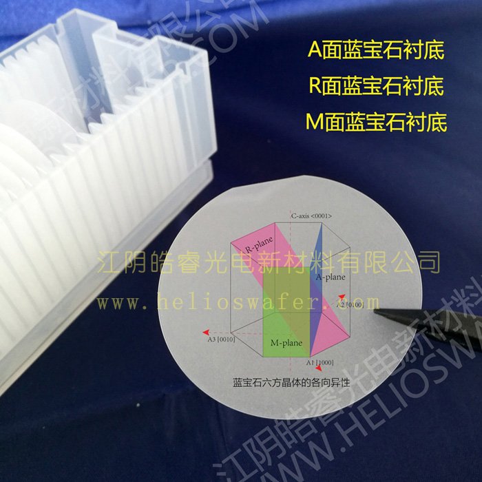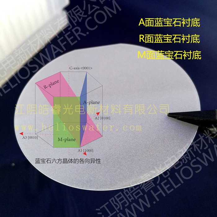 * 蓝宝石晶体具有各向异性,C面(0001)是最为常用的蓝宝石晶面,其他主要晶面有A面(11-20),M面(1-100),R面(1-102)。