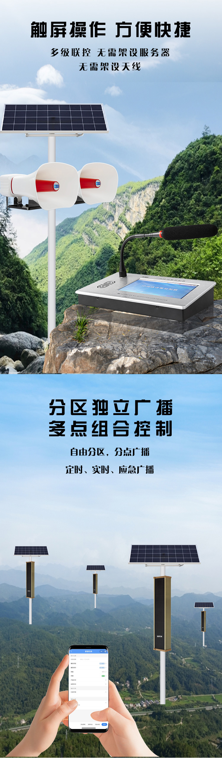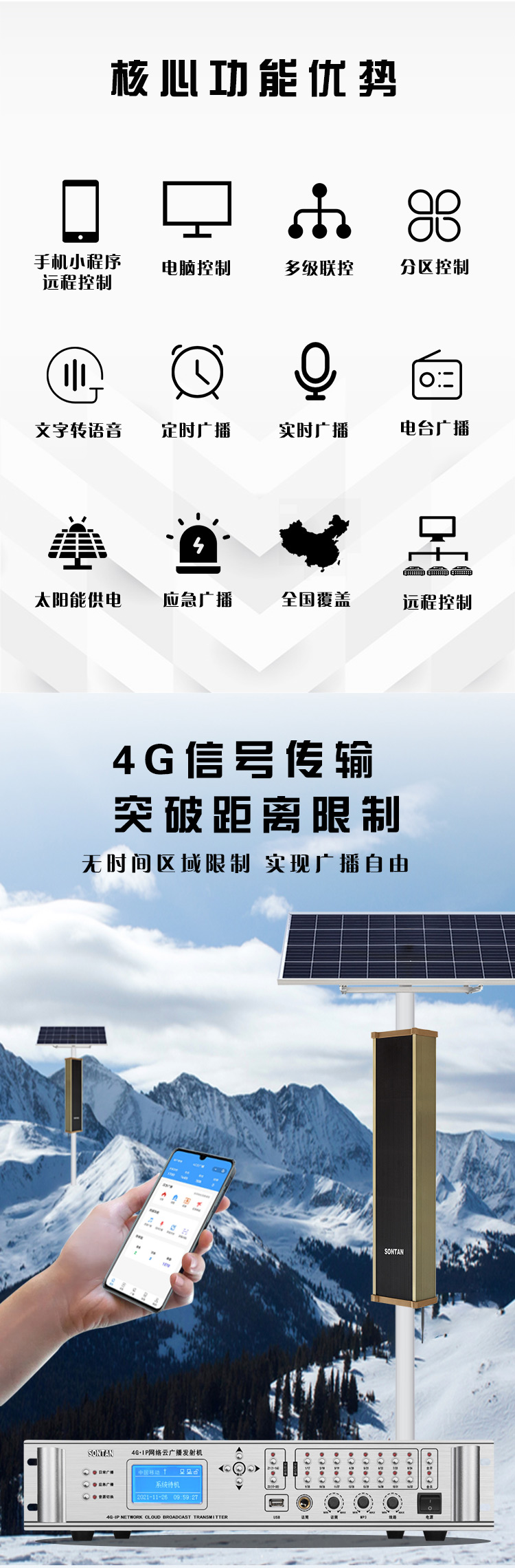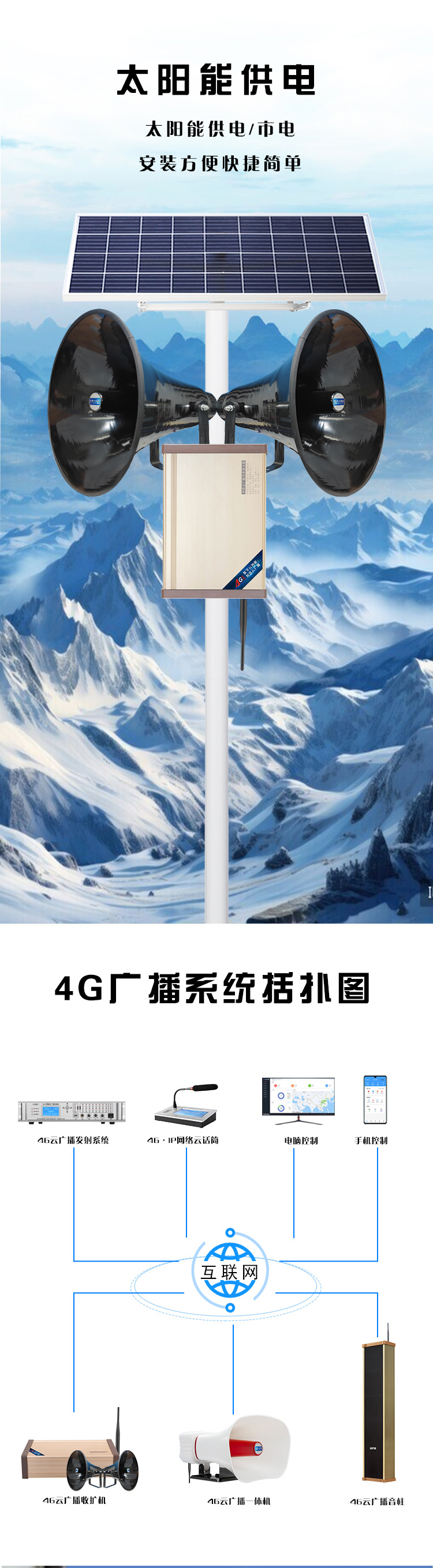 4G信号传输云广播系统 可太阳能供电/可市电手机端微信小程序控制 是否支持加工定制 | 是 | ||