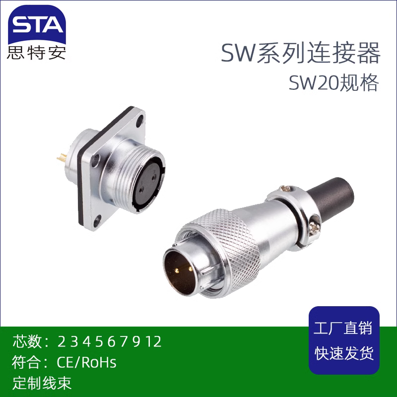 WS20 9芯工业连接器J/K 直式电缆护套接头TQ方形法兰座Z配套防尘盖 型号WS20