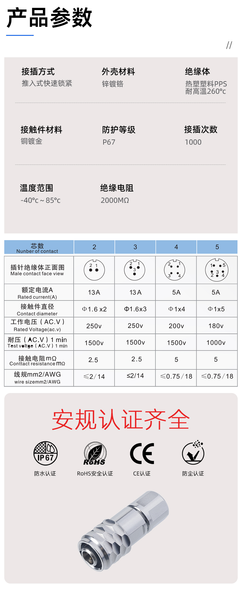 SF610B/P 焊线防水插头 2 3 芯4 5孔 插拔自锁金属连接器 方形 后螺母插座 型号 | SF610B/P | ||
