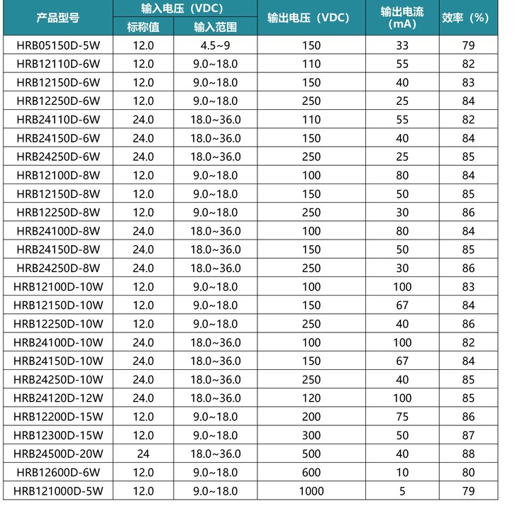 HRB W2~20W 系列模块电源是一种DC-DC升压变换器。该模块电源的输入电压分为:4.5~9V、9~18V、及18~36VDC标准(2:1)宽输入电压范围(宽电压输入模块电源是指输入电压可以允许在很宽的范围内变化)。输出单电压:50V、100VDC、110VDC、150VDC、200VDC、250VDC、400VDC、500VDC、600VDC、800VDC、1000VDC等,具有功率密度大,输出功率高,应用范围广等优点。