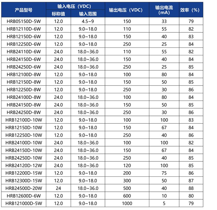 HRB隔离升压产品型号选择指南