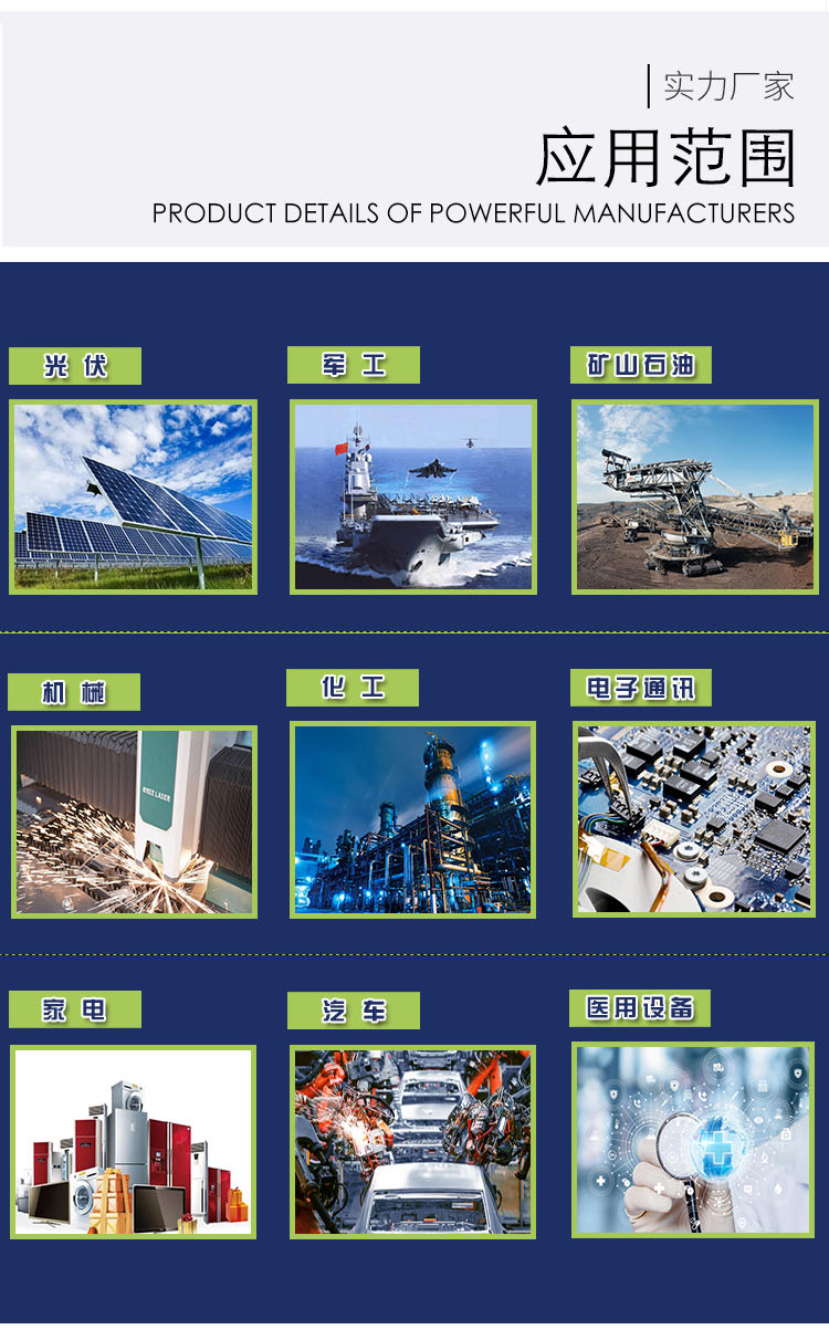 应用 | 应用在机械、电子、石油、化工、纺织、精密测量仪器、精密机床等领域 | ||