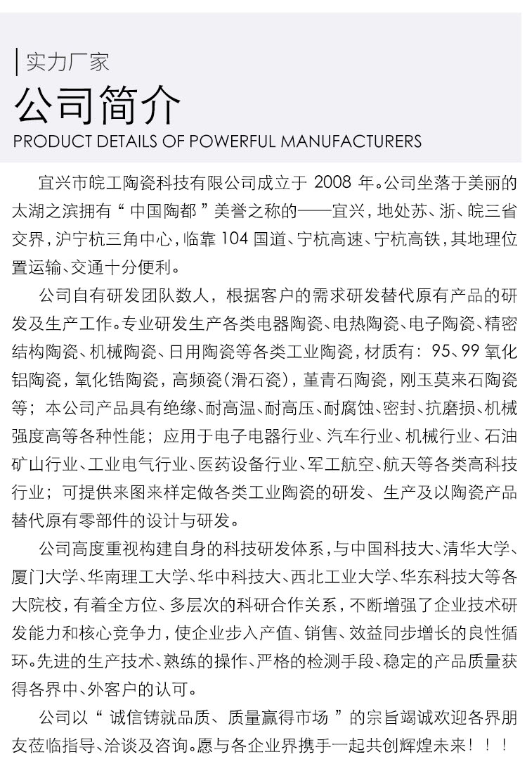 商铺名称:宜兴市皖工陶瓷科技有限公司