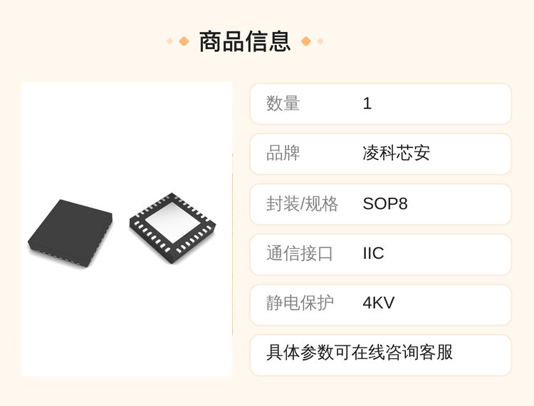 凌科芯安国产加密芯片SOP8封装IIC通信接口静电保护4KV管装100片