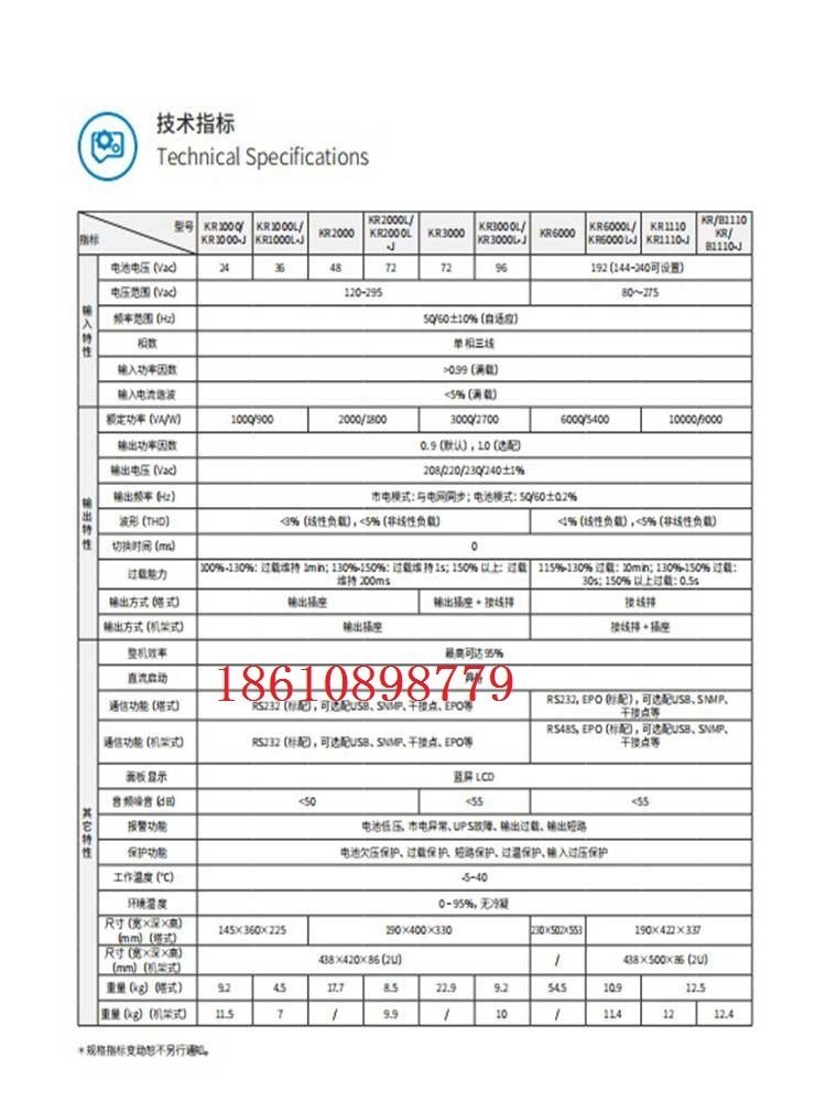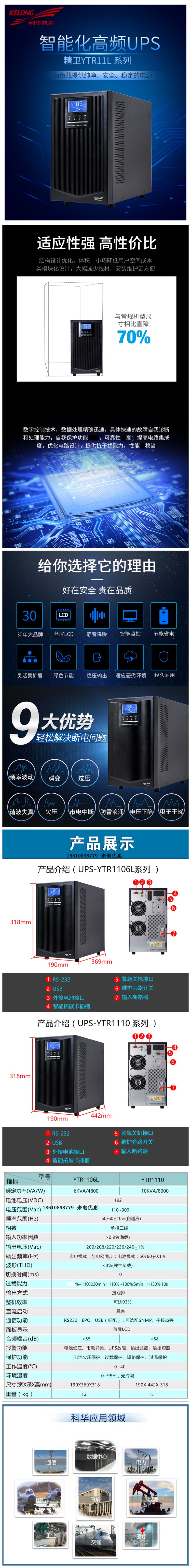 KELONG UPS不间断电源KR6000L 在线式6KVA/5400W 品牌 | 科华 | ||