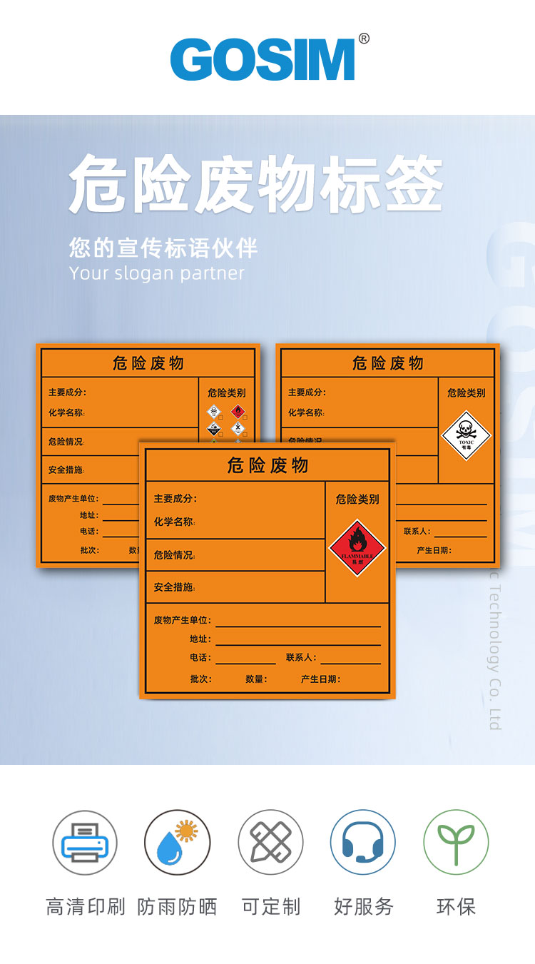 国新GOSIM危险废物标识警示牌石棉易燃标签纸危废间安全警告标志
