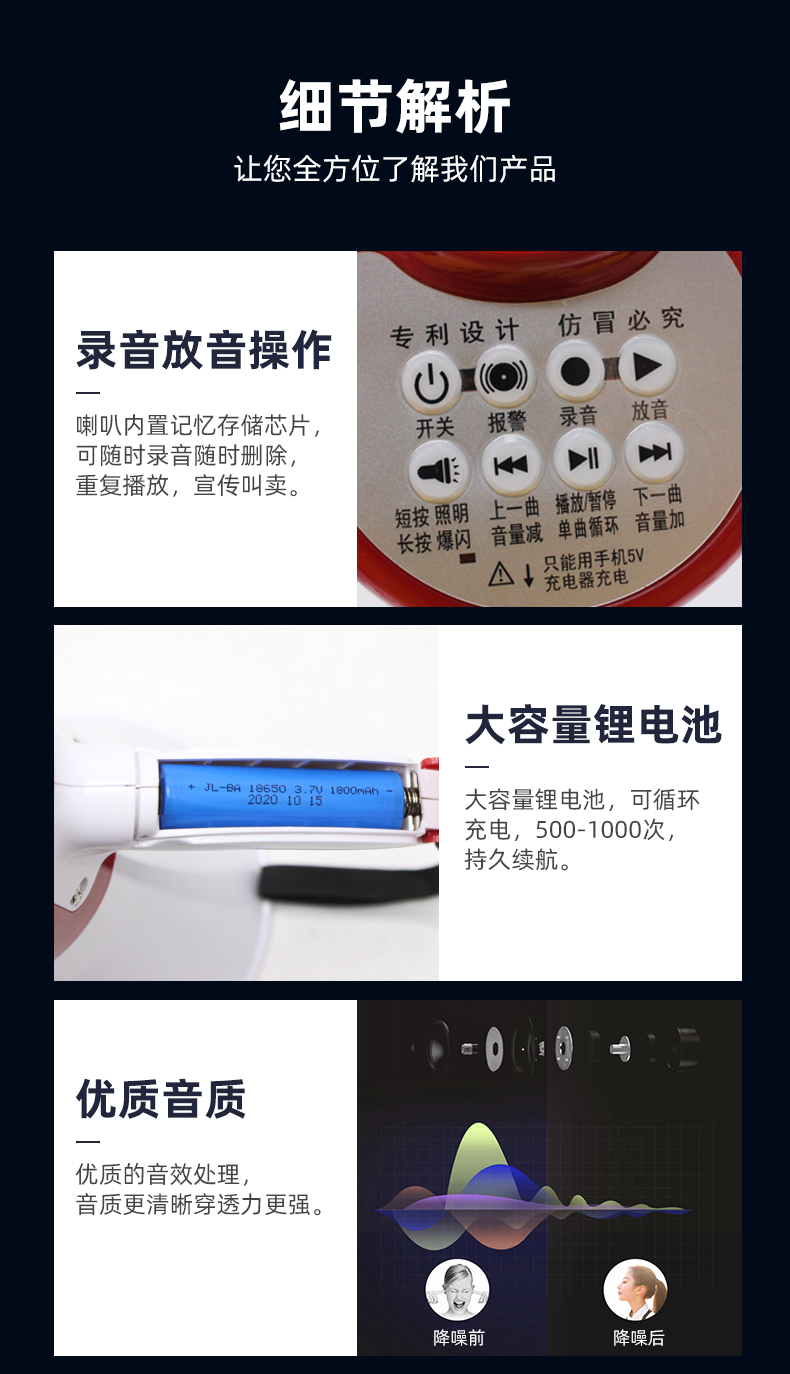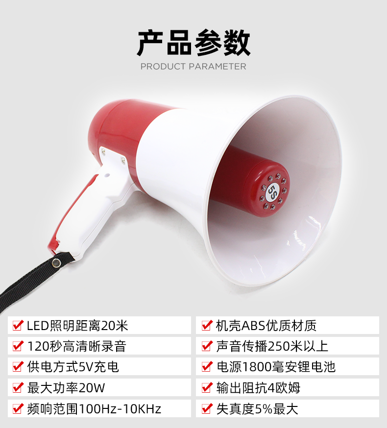 带灯爆闪手持喊话器大功率充电录音地摊宣传叫卖喇叭室外大音量