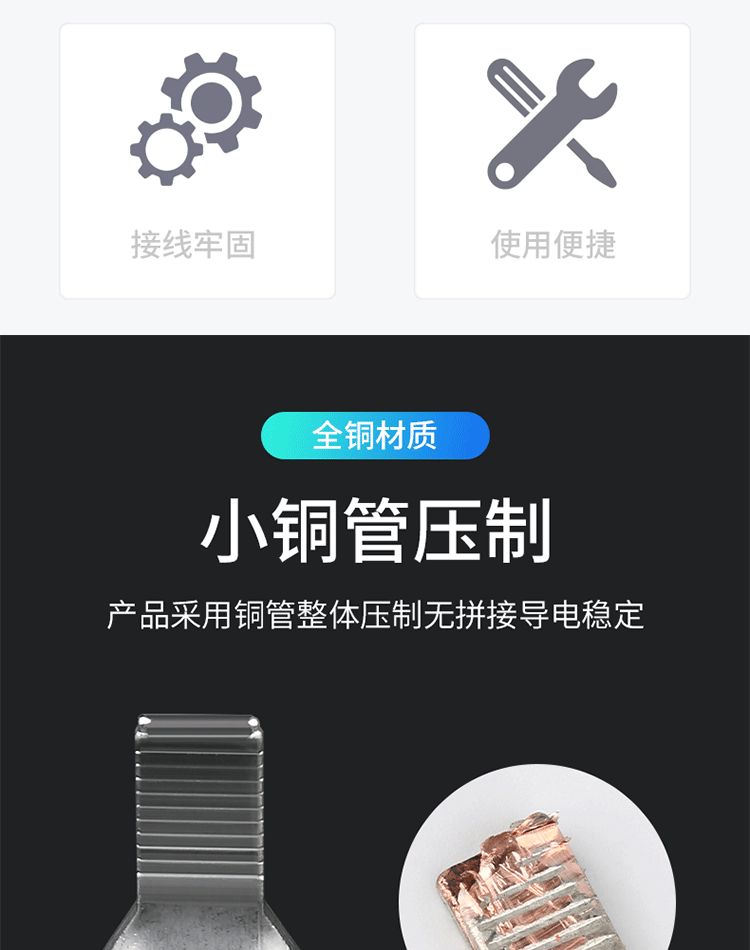 厂家C45-6平方插针,DZ47空开端,紫铜焊口接线铜鼻子线耳