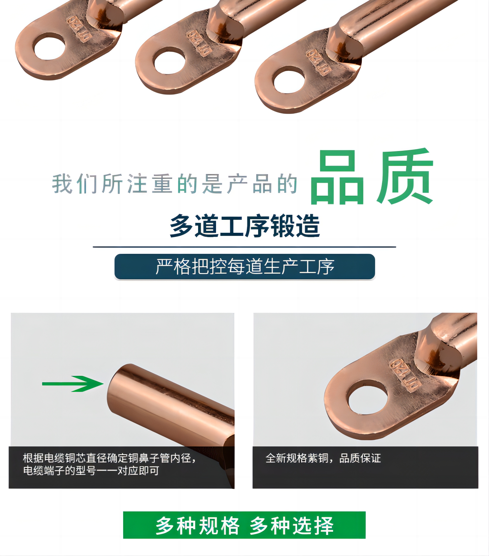 厂家供应铜鼻子DT挂锡铜线耳紫铜电缆接头不打孔铜接头