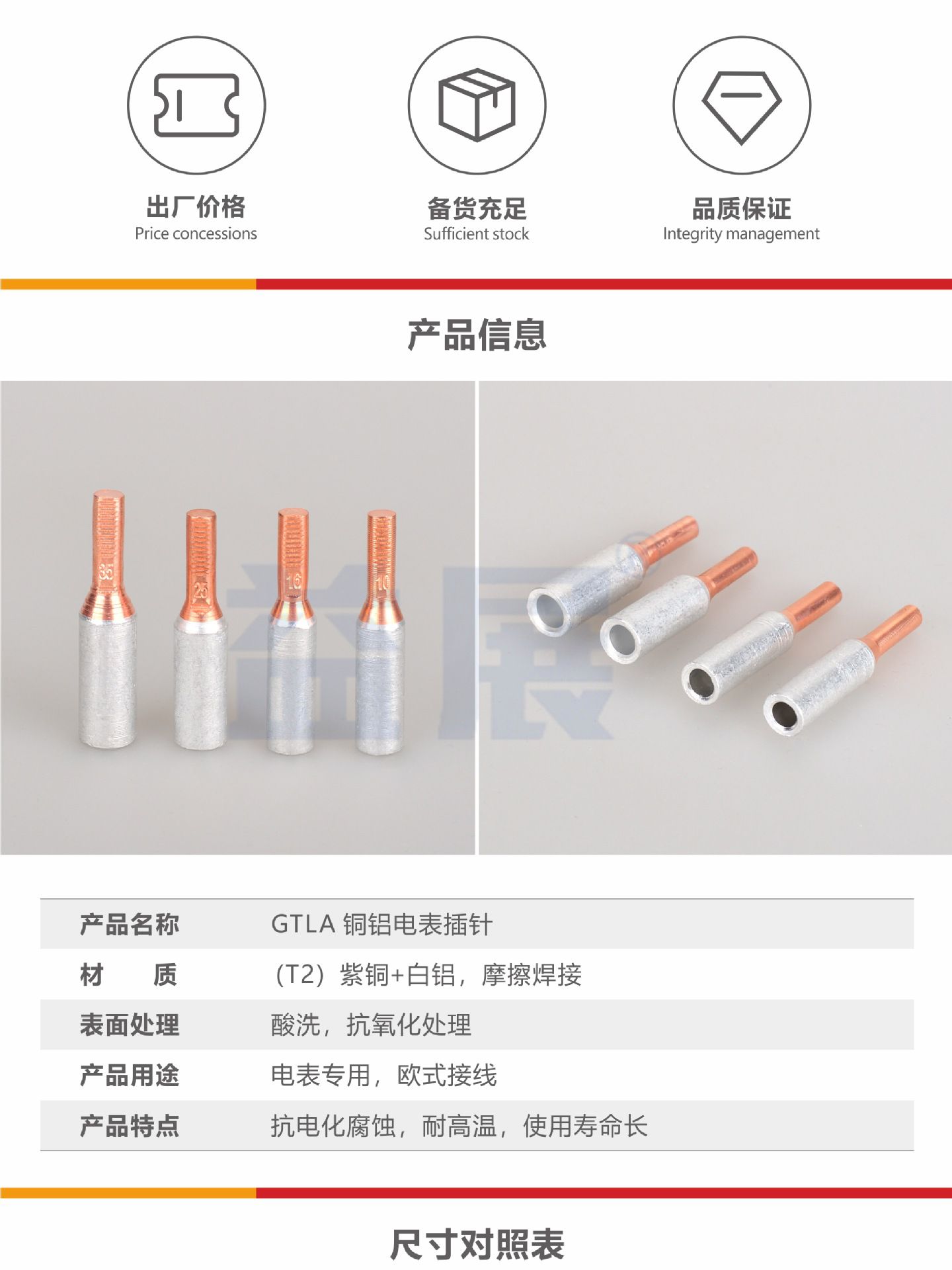 电表铜铝插针GTLA-1016253550平方铜渡接线端子铜线接头