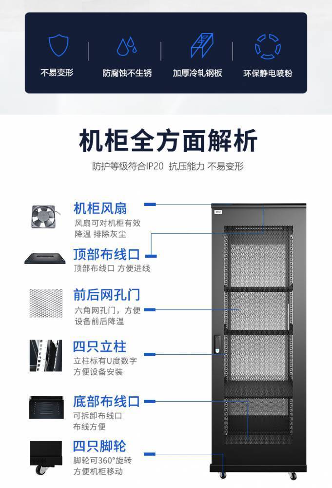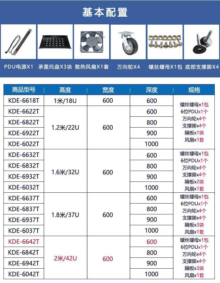 科创18U-42U 服务器机柜 标准19英寸机柜