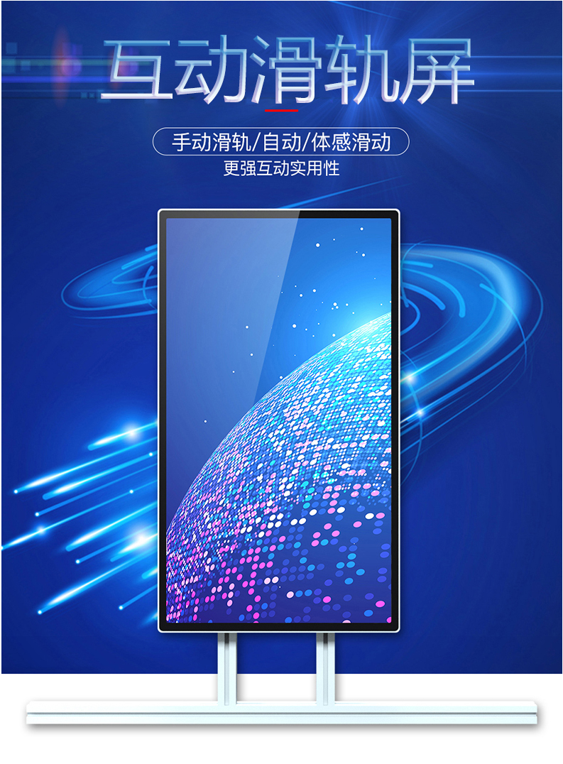 用途 | 滑轨屏目前来讲用应用于:办公、展厅、展品、楼道、汽车、展示、沙盘、党建、广告、高铁、多媒体、房地产、化妆品、工法馆、导引、户外、博物馆、科技馆、数字展览馆等多个行业及领域 | ||
