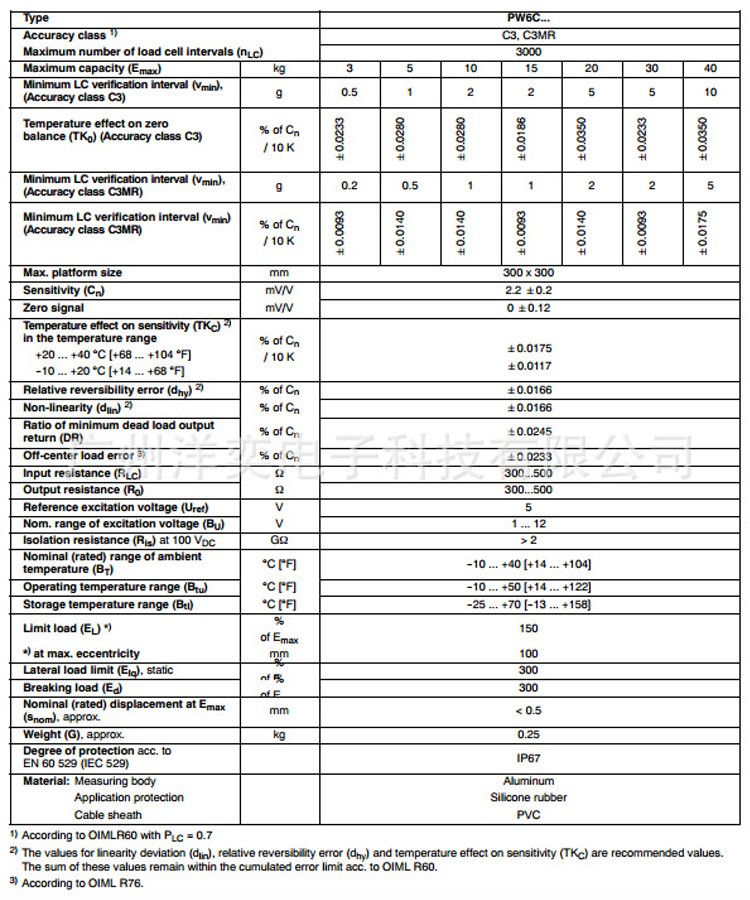 (2)量程:3kg,5kg,10kg,15kg,20kg,30kg,40kg