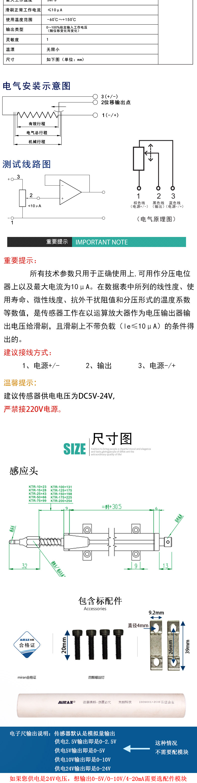 传感器类型 | 直线位移传感器 | ||