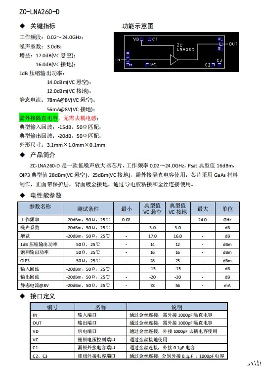中远创视低噪声放大器裸片砷化镓微波射频芯片0.02-24G