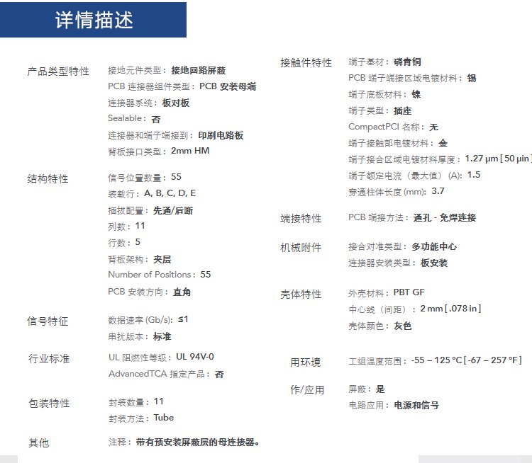 5352115-1 TE/泰科 2.0mm间距-55Pin 紧凑型PCI 背板连接器 品牌 | 泰科 | ||