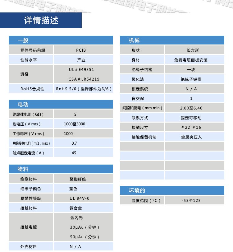 产品说明:环保产品,RoHS标准