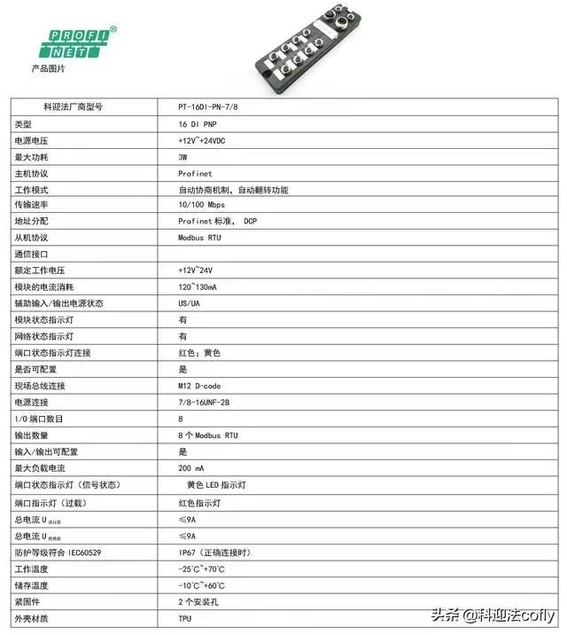 科迎法 远程I/O模块工业现场总线控制Profinet协议 16DI/DO 品牌 | 科迎法 | ||