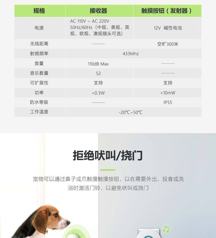 适用范围 | 狗狗触摸感应无线门铃 | ||