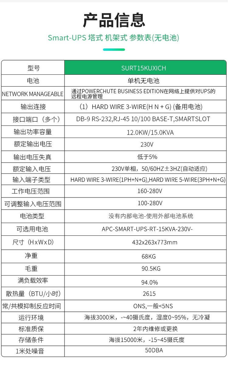 APCSmart-UPS不间断电源SURT15KICH/15KVA 办公室数据机房备用 品牌 | 施耐德APC | ||