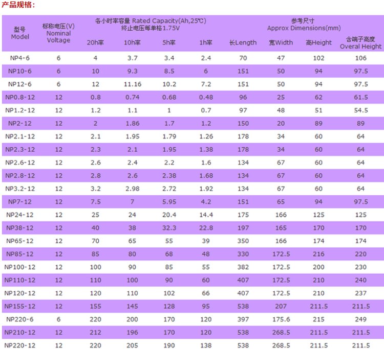 化学类型 | 铅酸蓄电池 | ||