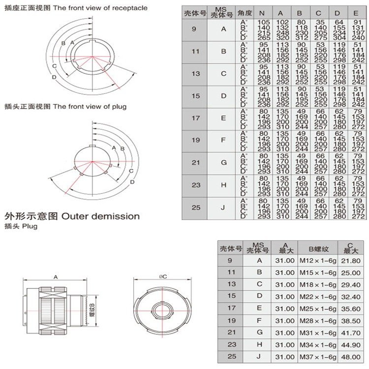 该系列圆形电连接器符合(MIL-DTL-D38999)?系列的要求,采用三头螺纹快速连接,并带防松脱机构,具有体积小,重量轻,接触件密度高,电磁屏蔽功能,接触件压接可取卸,插针防斜插等特点,本产品具有防火壳体和多种镀层,具有高温下的高强度振动特性,适合在恶劣的风沙和潮湿的场合下使用。螺纹快速连接并带防脱配机构,EMI/RFI屏蔽,插合面界面密封.防斜插设计,有铝合金壳体/海军铜/不锈钢三种壳体。该系列圆形电连接器符合(MIL-DTL-D38999)?系列的要求,采用三头螺纹快速连接,并带防松脱机构,具有体积小,重量轻,接触件密度高,电磁屏蔽功能,接触件压接可取卸,插针防斜插等特点,本产品具有防火壳体和多种镀层,具有高温下的高强度振动特性,适合在恶劣的风沙和潮湿的场合下使用。螺纹快速连接并带防脱配机构,EMI/RFI屏蔽,插合面界面密封.防斜插设计,有铝合金壳体/海军铜/不锈钢三种壳体。