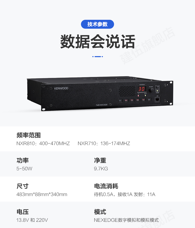 建伍NXR810数字中继台数字模拟两用对讲机50公里基站