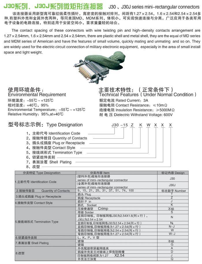 用于各类军用电子设备的电路连接,特别适用于安装空间小场合。