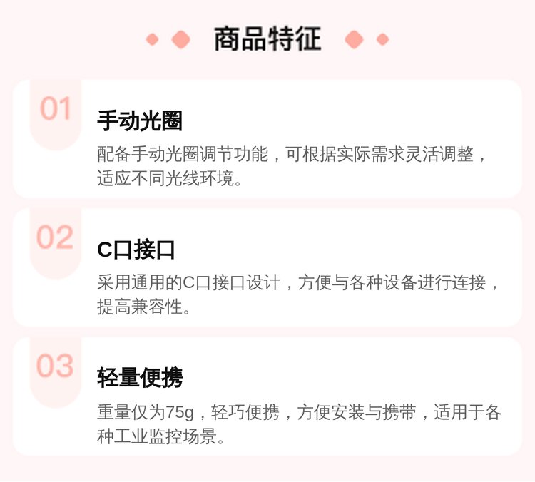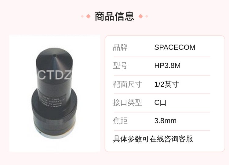 SPACECOM针孔镜头工业监控用高分辨率成像清晰