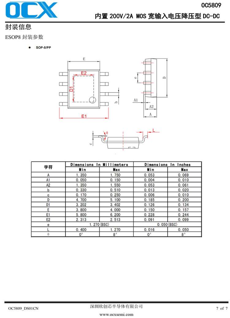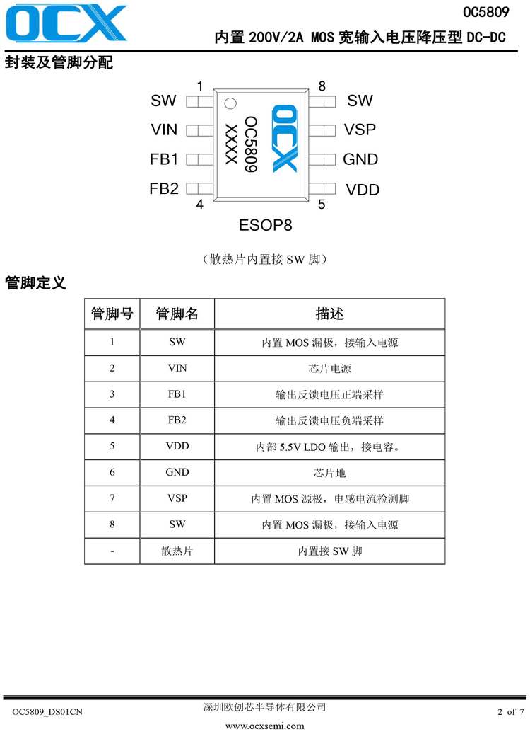 OC5809采用ESOP8封装,散热片内置接SW脚。
