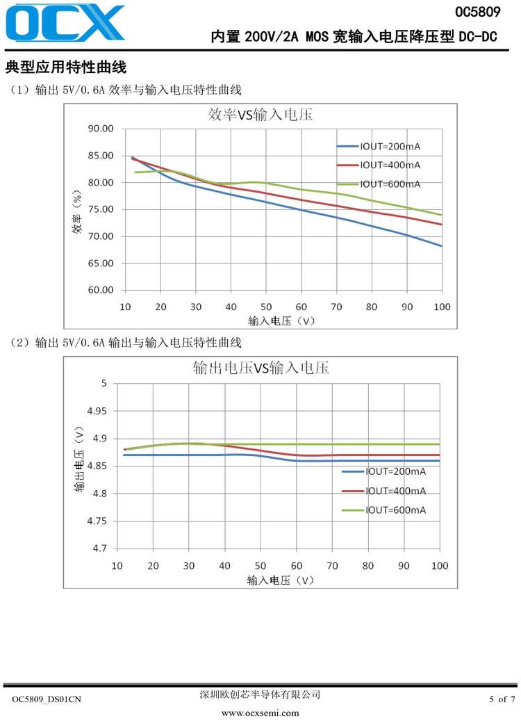 OC5809 采用固定频率的PWM控制方式,典型开关频率为140KHz。轻载时会自动降低开关频率以获得高转换效率。