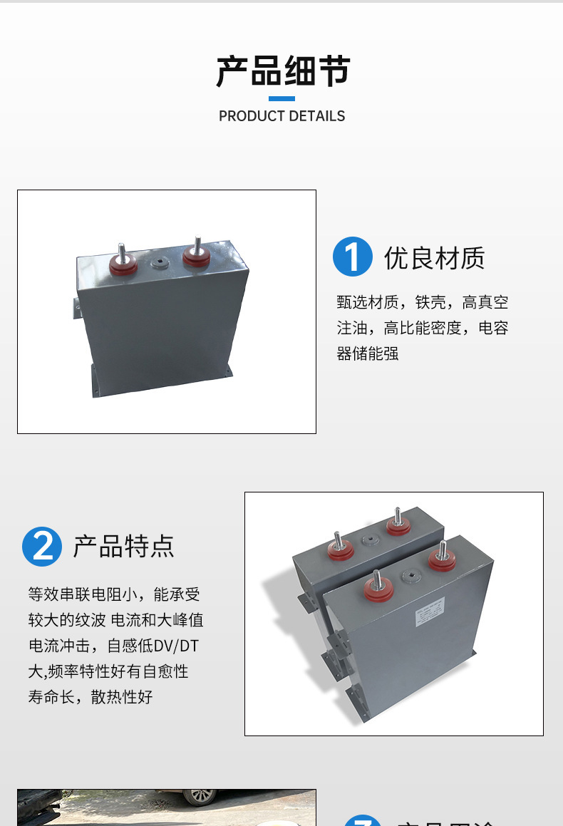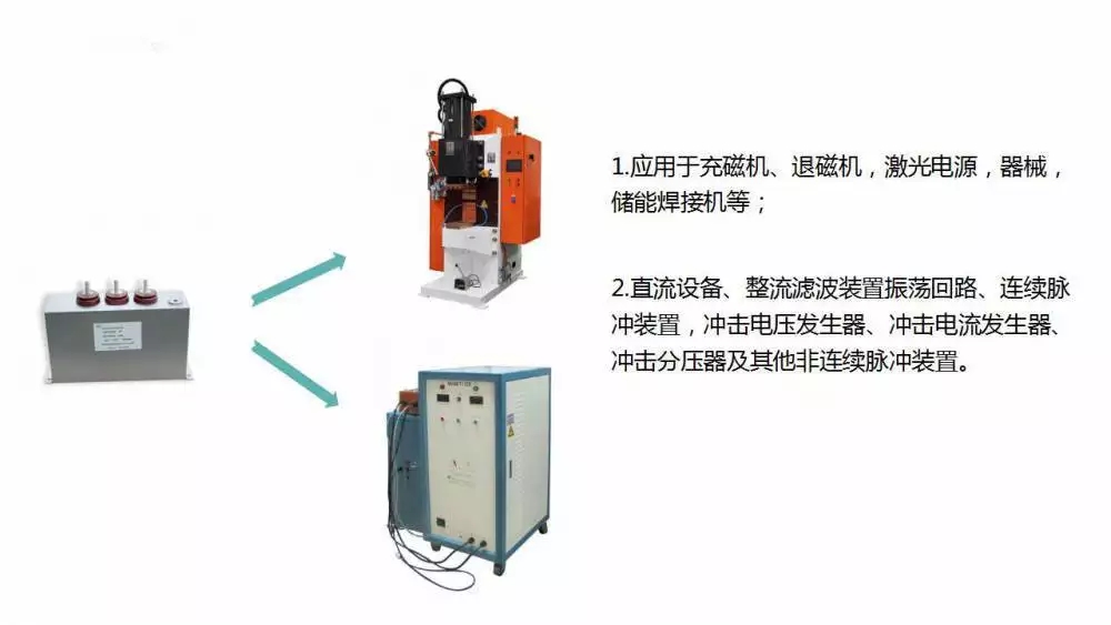应用范围:该电容器应用于充磁机、退磁机,激光电源,储能焊接机等;直流高压设备、整流滤波装置振荡回路、连续脉冲装置,冲击电压发生器、冲击电流发生器、冲击分压器及其他非连续脉冲装置。