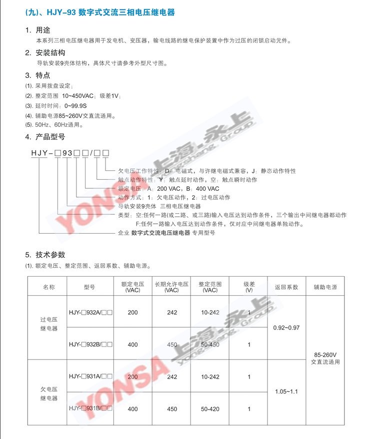 HJY-93系列数字式交流三相电压继电器??