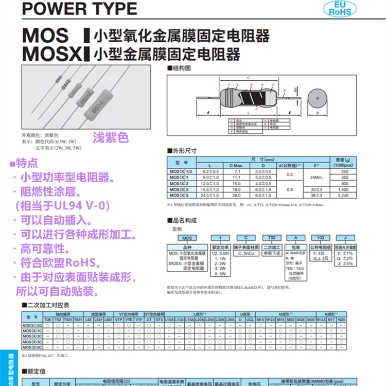 MOS 小型氧化金属膜固定电阻器 MOSX 小型金属膜固定电阻器