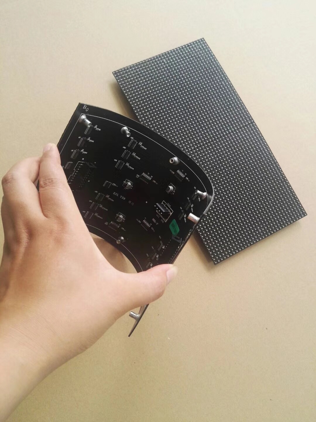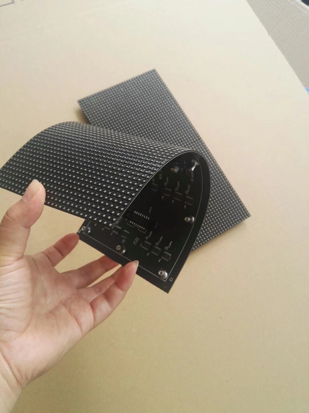柔性LED显示屏模组发明设计巧妙、成本低廉、施工效率高,能根据需要拼接弧形屏、圆柱、曲面等显示屏,是一个具有突出性特点和显示进步的技术改进。