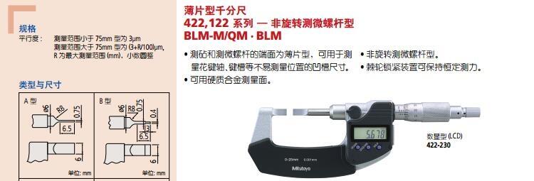 日本三丰Mitutoyo数显叶片千分尺422-230 0-25mm刀口薄片键槽测