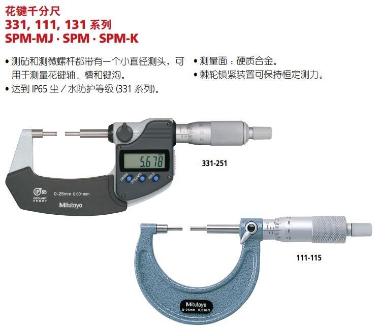 日本三丰Mitutoyo花键数显外径千分0-25mm 331-251 测头3*1