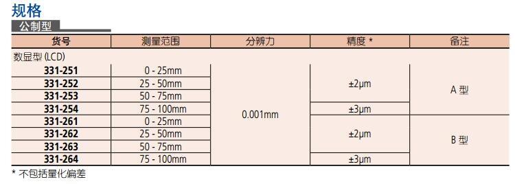 • 规格:0-25mm(331-251)测头3*10 公制显示